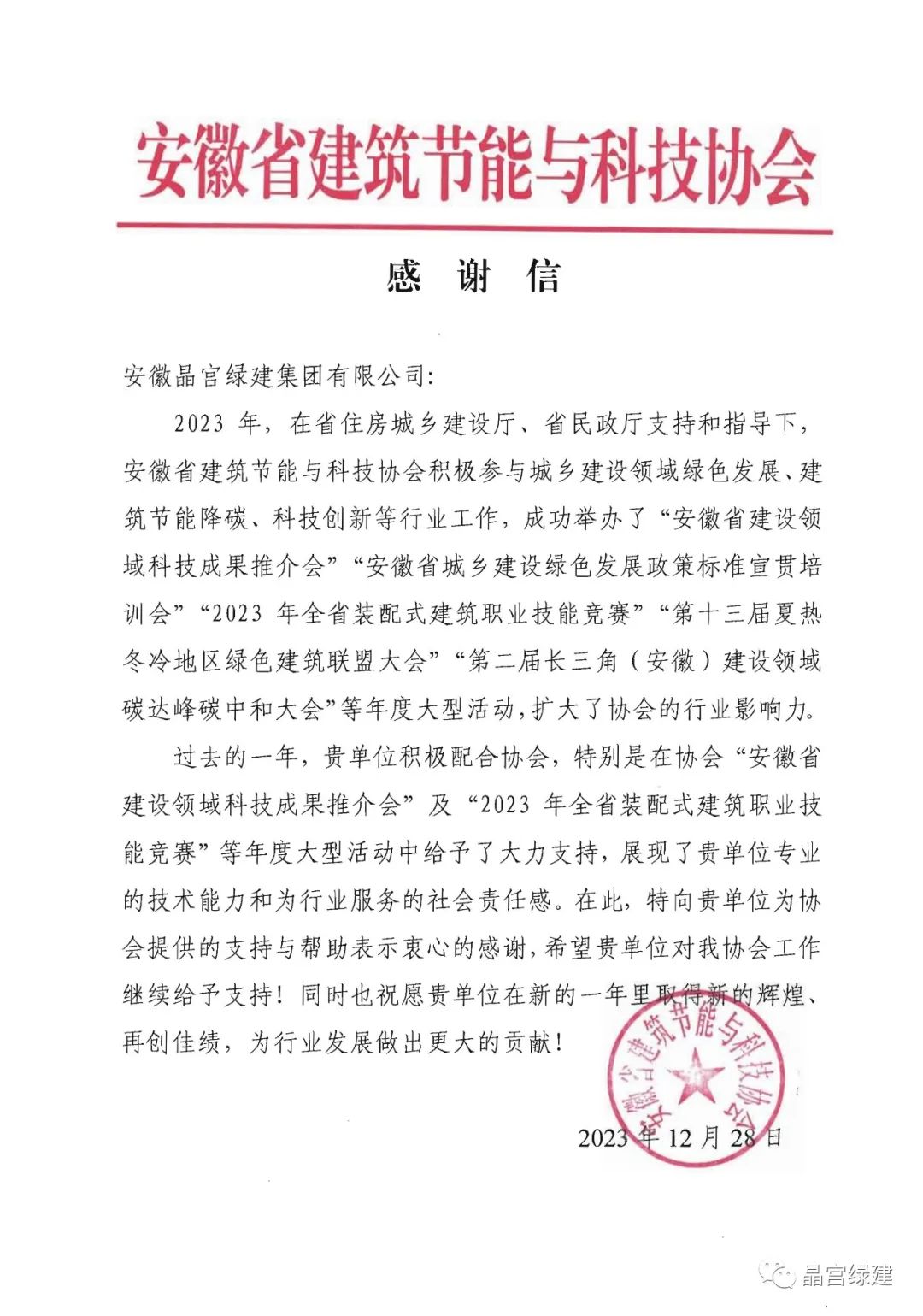 2023年是不平凡和意義非凡的一年。2023年,安徽省建筑節(jié)能與科技協(xié)會向安徽晶宮綠建集團