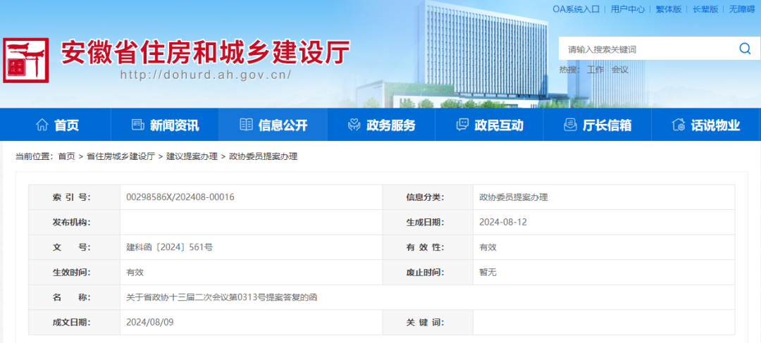 導(dǎo)讀:日前,安徽省住房和城鄉(xiāng)建設(shè)廳在《關(guān)于省政協(xié)十三屆二次會(huì)議第0313號提案答復(fù)的函》中